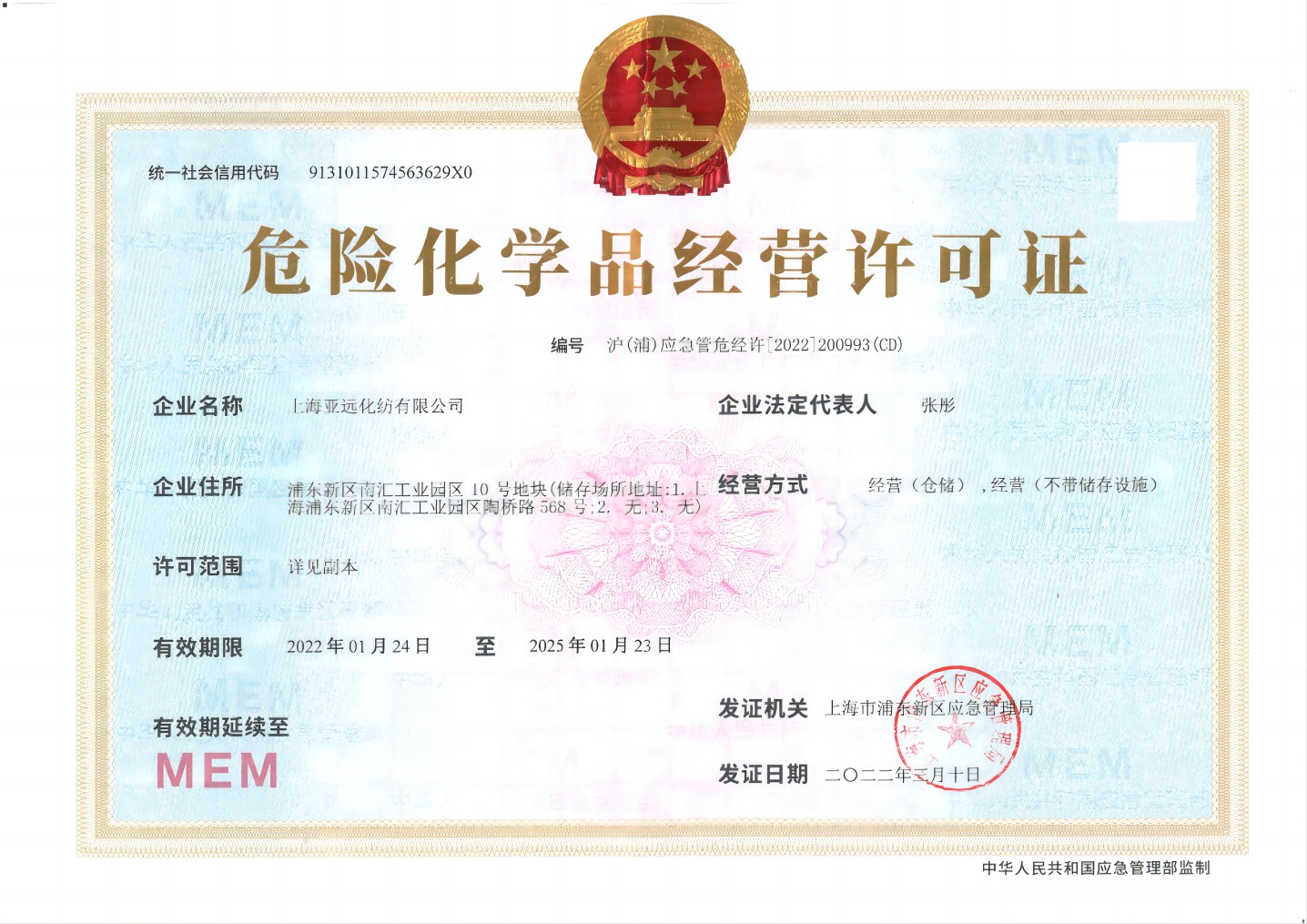 上海亞遠(yuǎn)化紡有限公司(化學(xué)危險(xiǎn)品專(zhuān)業(yè)倉(cāng)儲(chǔ))位于上海浦東新區(qū)南匯工業(yè)園區(qū)陶橋路568號(hào),占地面積30000平方,約50畝地。南匯工業(yè)園區(qū)是國(guó)家認(rèn)可的上海市級(jí)工業(yè)園區(qū),交通方便,地理位置優(yōu)越。2013年2月亞遠(yuǎn)化紡倉(cāng)庫(kù)危險(xiǎn)化學(xué)品儲(chǔ)存設(shè)施通過(guò)上海市安監(jiān)局及各相關(guān)部門(mén)的驗(yàn)收,取得上海市安監(jiān)局頒發(fā)的《危險(xiǎn)化學(xué)品經(jīng)營(yíng)許可證》,并同時(shí)取得上海市海事局危險(xiǎn)貨物裝箱備案證明